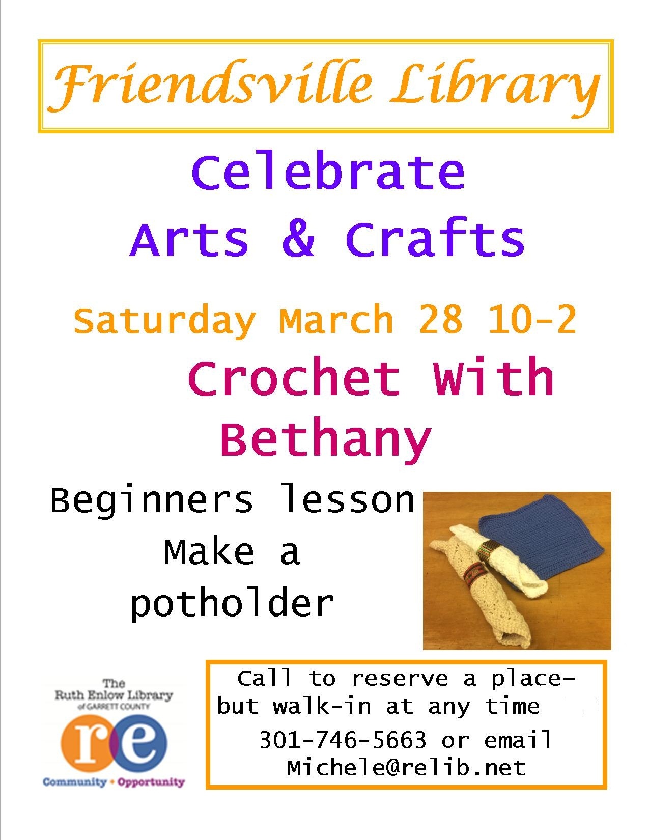 Celebrate the Arts & Crafts with a one day beginners crochet lesson with Bethany at the Friendsville Branch of the […] |